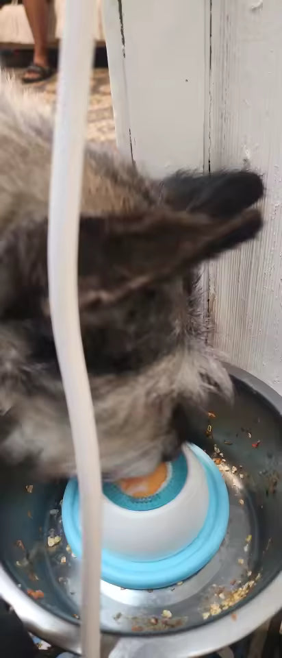 Pense que iba a destrozar el comedero😂 , pero me sorprendio como lo cuida de lo mucho que le gusta 💞